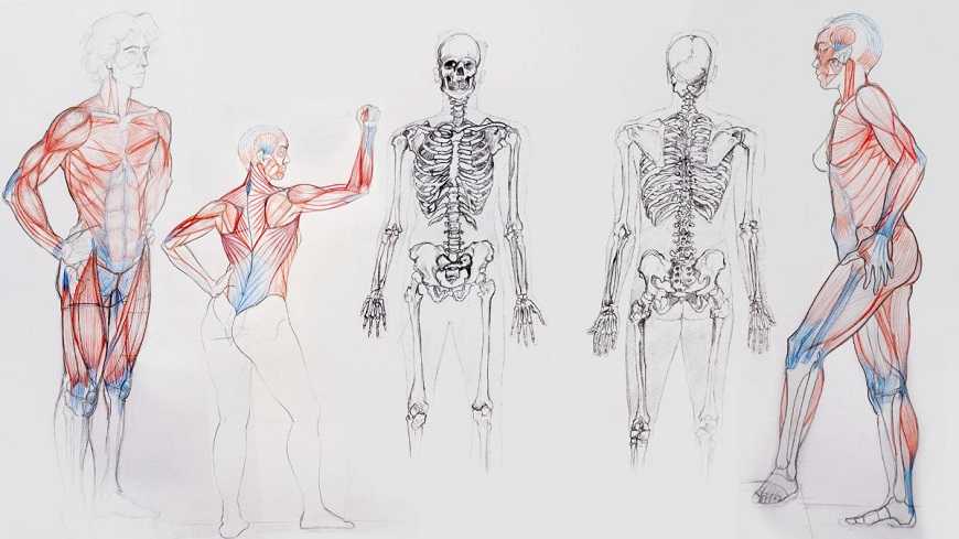 Каждый художник, который собирается рисовать людей, должен в обязательном порядке знать строение тела человека. Потому начать нужно с изучения его конструкции, мышц и костей. Прорисовывать все контуры сразу не нужно.