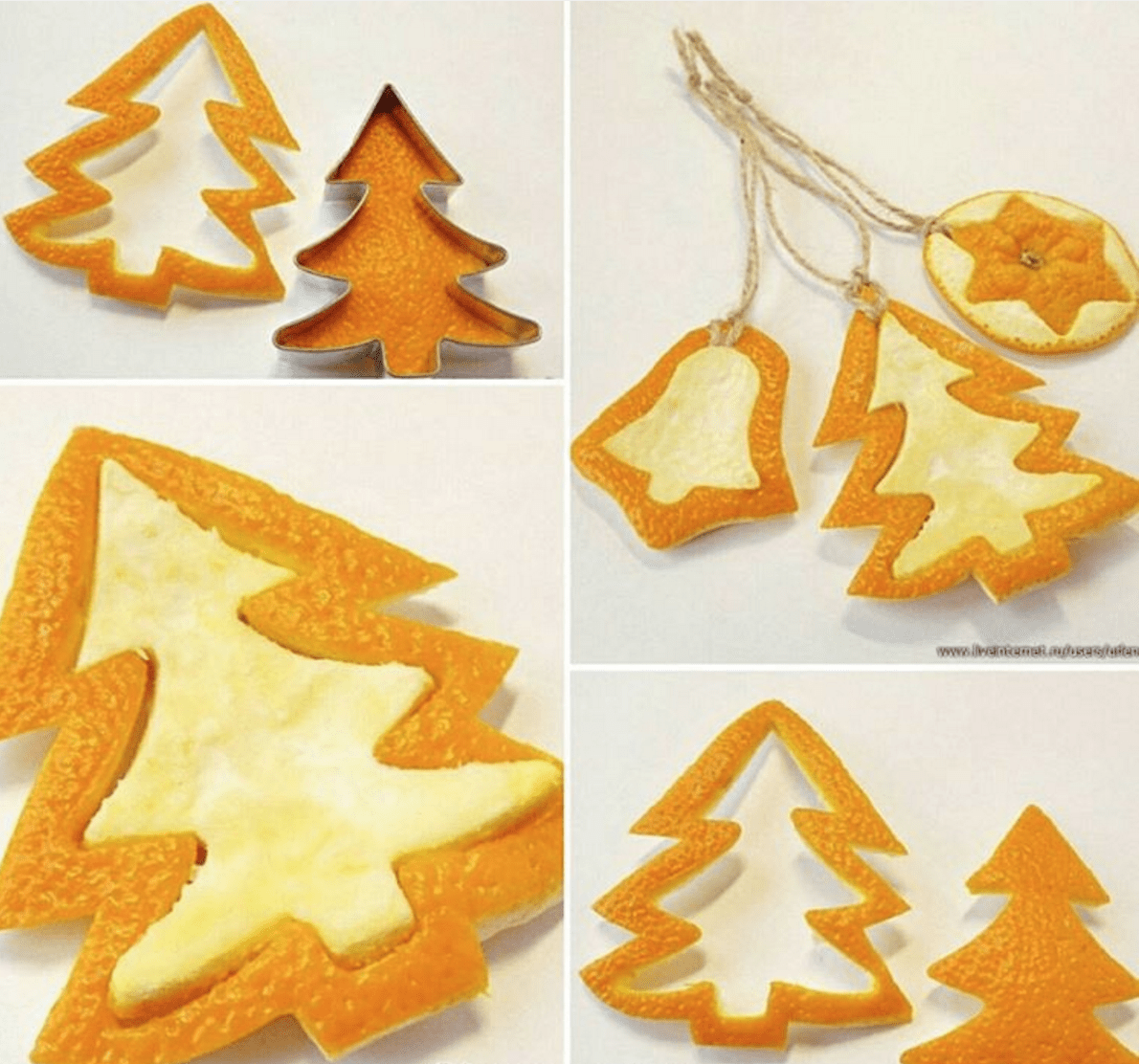 - С помощью формочки для печенья выдавите в кожуре форму елочки, звездочки и т.д