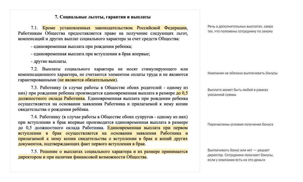 Для денежных бонусов уточните, до какой суммы возможна выплата. Например, не «2000 ₽ при рождении ребенка», а «до 2000 ₽ при рождении ребенка».