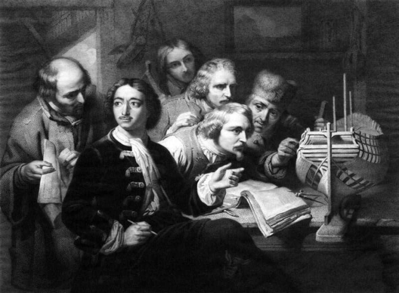 Ж.Мишель «Петр I в Заандаме» (Голландия), гравюра