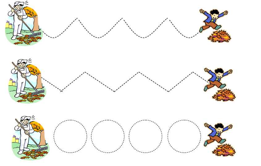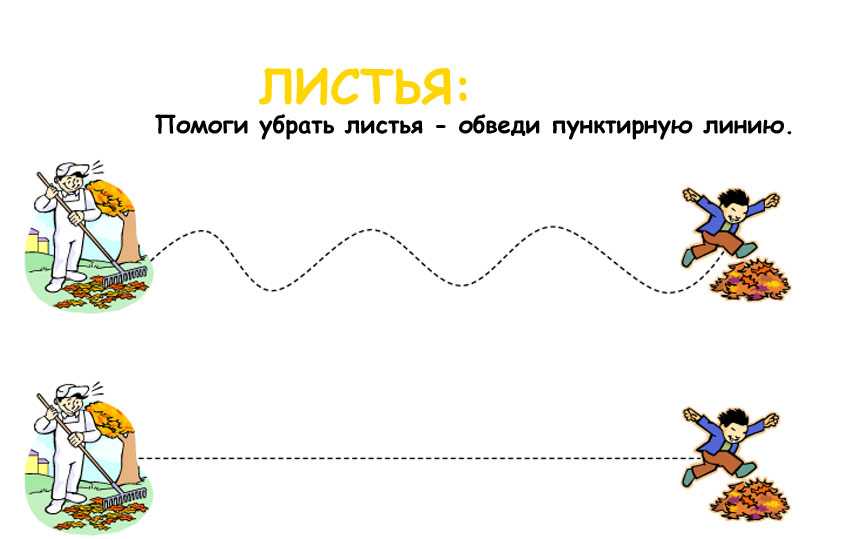 Занятия на осеннюю тему на развитие мелкой моторики. Здесь нужно обвести пунктирную линию.