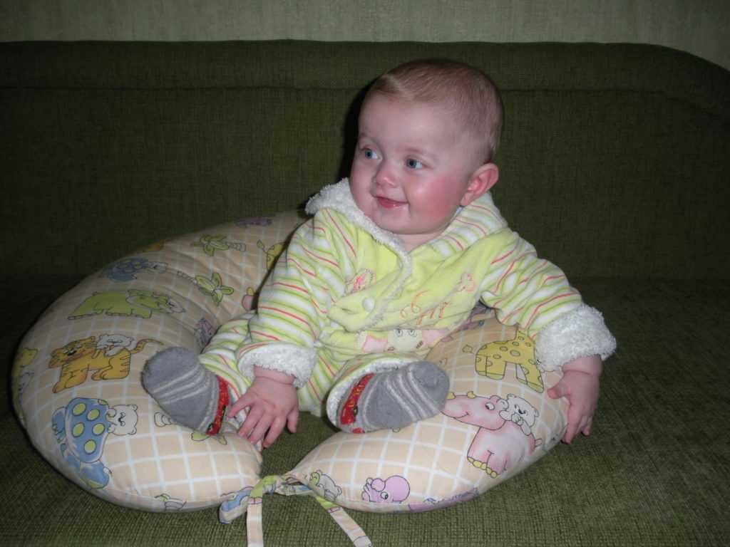 Случается, что полугодовалый кроха уверенно держит спинку прямо, но сесть без посторонней помощи не может. В этом случае можно помогать ему, давая пальцы для опоры, и подтягивать до нужной позиции. Поднимать лучше из положения полулежа, когда под спинкой есть твердая подушка. Ни в коем случае не надо делать за него всю работу — сажать, не давая понять, как именно происходит этот процесс.