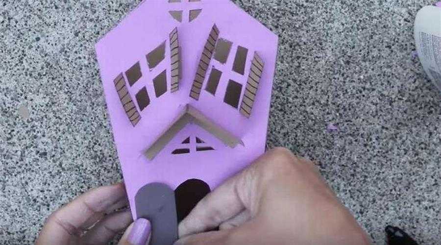 Вырежьте шаблон из бумаги и прорежьте окна и двери