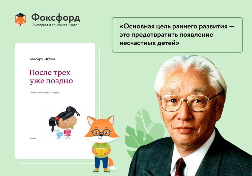 Масару Ибука — новатор в сфере раннего развития. Он считает, что до трёх лет ребёнка можно научить чему угодно. В 1977 году Ибука изложил свои приёмы обучения в книге, которая тут же стала мировым бестселлером. На русском языке она впервые издана в 1991 году и с тех пор не сходит с книжных полок молодых родителей.