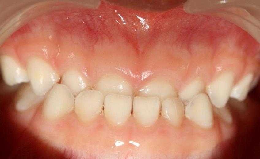 Обычно молочные зубы достаточно мелкие и им хватает места. Но если челюсть сужена, зубы могут при прорезывании перекрывать друг друга, вырастать вне зубного ряда.