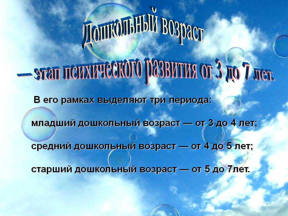 До 5 лет дети считаются младшими дошкольниками, от 5 до 7 лет старший дошкольный возраст.