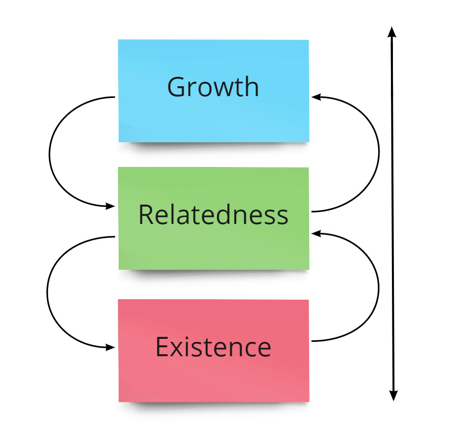 Клейтон Альдерфер взял идею Маслоу и усовершенствовал ее. Он объединил потребности и создал три группы: