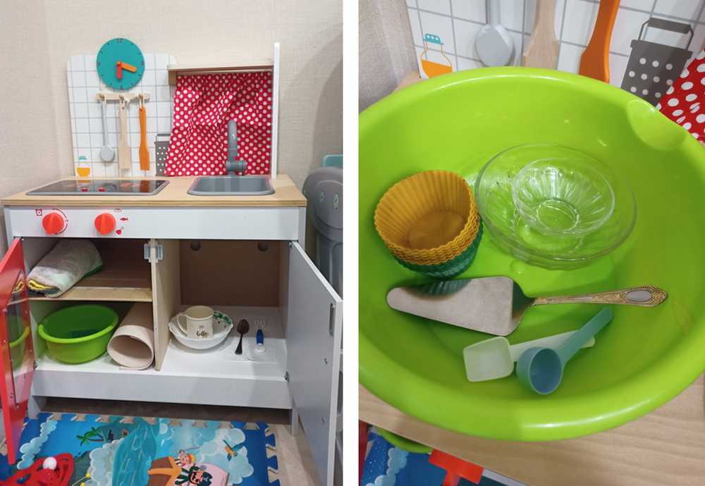 Мы удобно переоборудовали детскую кухню и поставили необходимые предметы