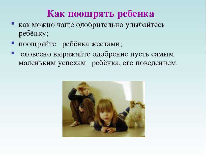 В случае проступка лишите малыша угощения, развлечения, поощрения. Негативный поступок не должен ассоциироваться с физическими работами, наказанием, унижением достоинством ребенка. Это вызовет у малыша чувство досады и обиды. Возможно, книга по воспитанию прошлых лет расскажет вам о принципах отрицательной мотивации, но в отношении детей нужно применять мягкие методы.